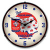 This handcrafted 14-inch clock features the iconic Champlin Oil branding in vibrant, backlit LED that glows beautifully day and night, transporting you straight back to the golden age of American gas stations and service stations. The bright, even illumination brings the classic design to life, making it an eye-catching centerpiece for any retro gasoline memorabilia collection. Whether you’re a serious oil company collector, run a vintage-themed business, or just love the charm of antique gas pump aesthetics, this clock captures that authentic mid-century spirit. It’s perfect for man caves, garages, service station themed bars, or anywhere you want to celebrate automotive history and petroleum nostalgia.